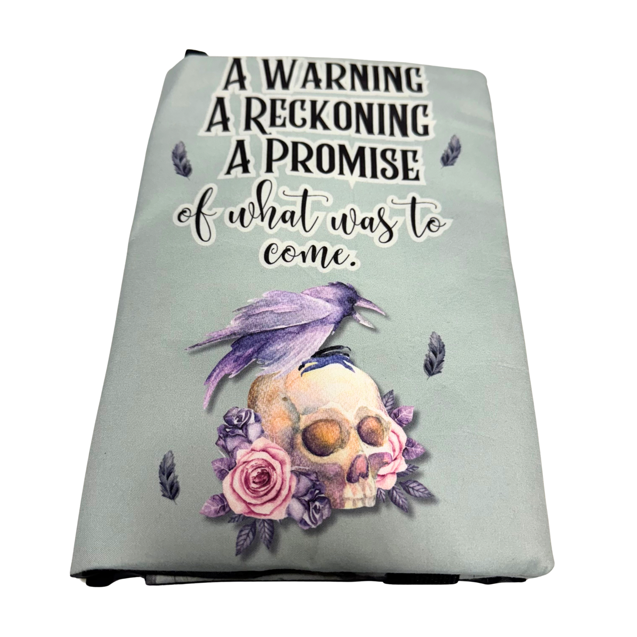 Fabric Book Cover featuring a a quote from Fall of Ruin and Wrath. Designed by JLA .