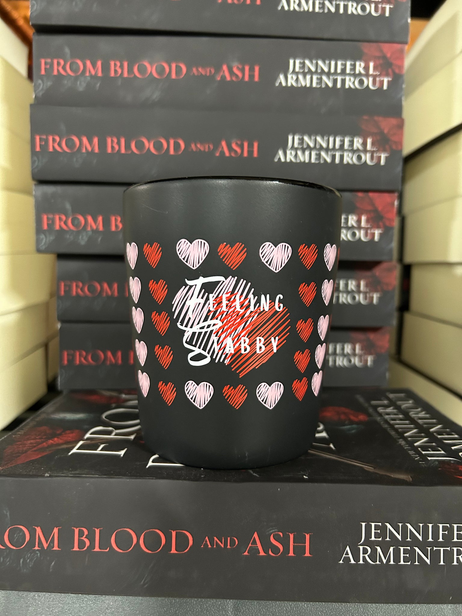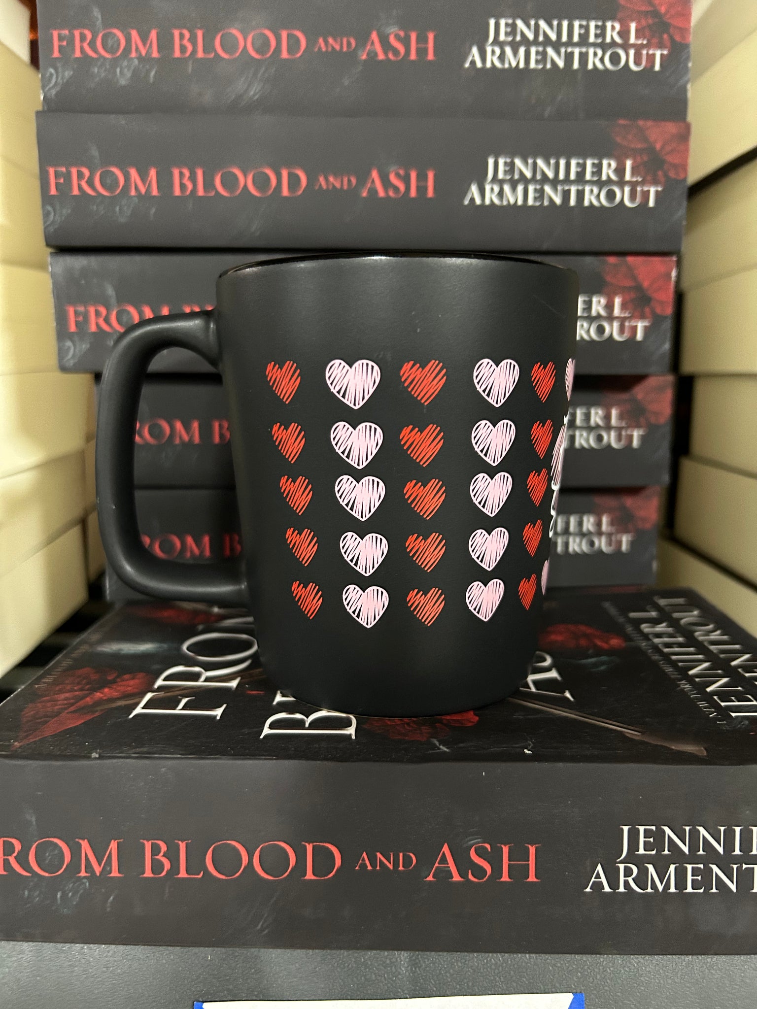 This 12oz. matte black mug features Valentine themed wrap around artwork designed by JLA herself!